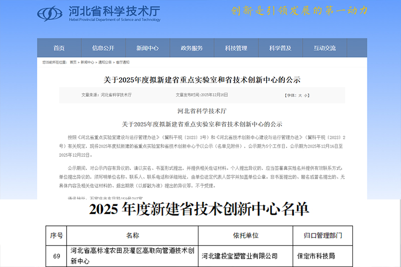 Baosu Pipe has been officially recognized as a Provincial Technology Innovation Center following a rigorous evaluation jointly conducted by regional science and technology authorities.